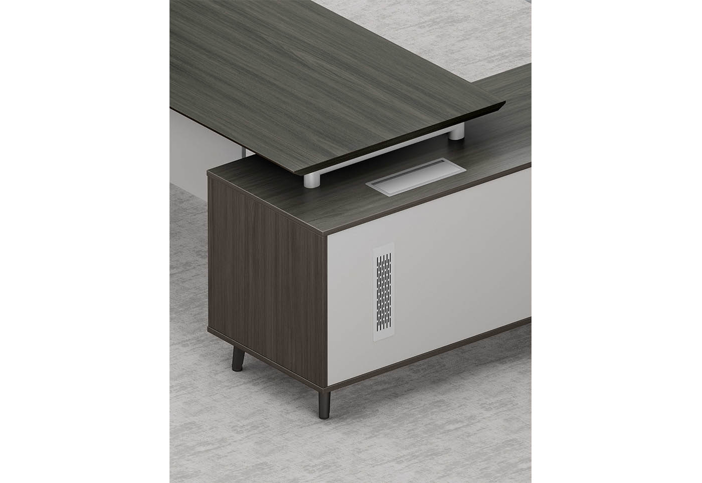 1.工藝:采(cai)用E0級刨花板貼(tie)三聚氰胺飾(shi)面(mian) 2.封(feng)邊(bian):采(cai)用優質PVC封(feng)邊(bian) 4.五(wu)金:鋼(gang)制支(zhi)撐架(2.0mm壁厚); 5.配件:鋁框桌(zhuo)屏散熱(re)蓋+“BMB”牌緩沖導(dao)軌(gui)+“BMB”牌阻(zu)尼(ni)門鉸+優質鋁框桌(zhuo)屏翻蓋線盒(he)+機械密碼鎖(suo); 6.班臺(tai)分左右;