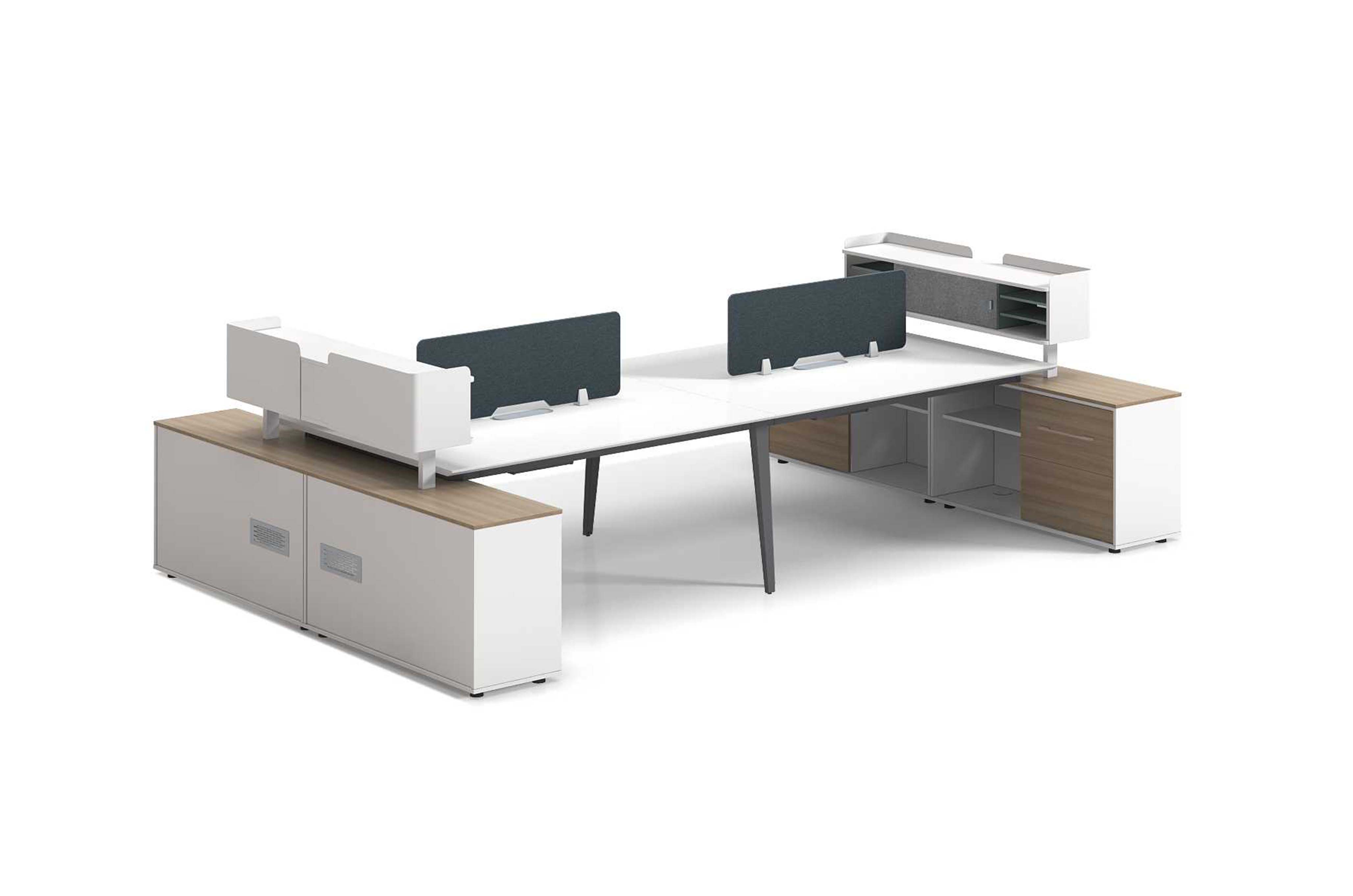 1.工藝:采(cai)用E0級刨花板(ban)貼三聚氰胺飾面 2.封邊(bian):采(cai)用優質PVC封邊(bian) 3.屏風(feng):ML403藍色皮(pi)紋無框桌(zhuo)屏; 4.五金:鋼制文(wen)件架擋板(ban)(壁(bi)厚(hou)1.5mm)+1.5mm壁(bi)厚(hou)鋼腳(jiao)+1.6mm壁(bi)厚(hou)鋼制橫梁(liang); 5.配(pei)件:優質鋁(lv)合金散熱(re)蓋+優質鋁(lv)合金趟門配(pei)件+鋁(lv)合金拉手+優質ABS圓柱形調節腳(jiao); 6.走線:臺面配(pei)OP線蓋; 7.選配(pei):可(ke)選配(pei)多款線槽(cao);
