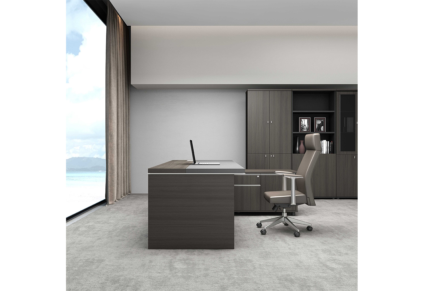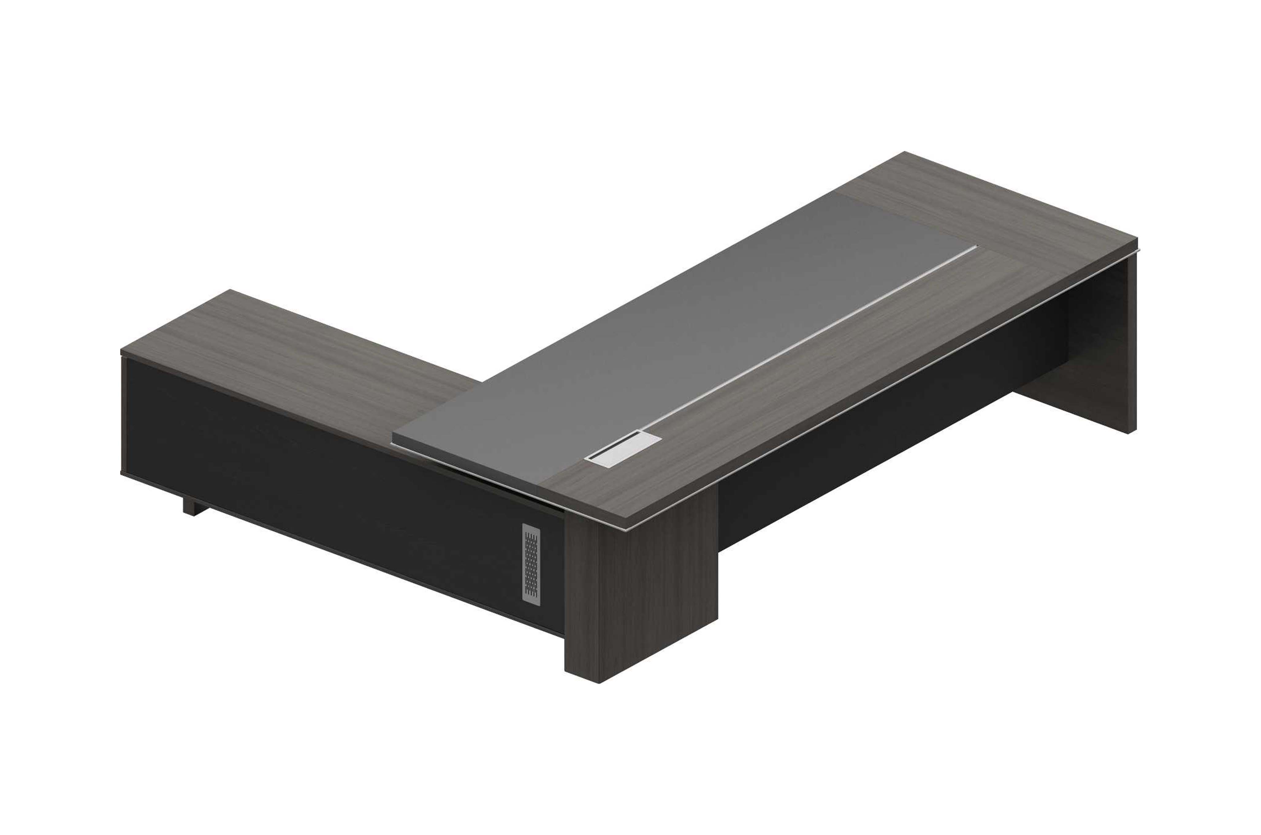 1.工藝:采用E0級刨花板貼三聚氰胺飾面(mian)(mian) 2.封(feng)邊(bian):采用優質PVC封(feng)邊(bian) 3.五(wu)金:“BMB”牌緩沖(chong)導(dao)軌+“BMB”牌阻(zu)尼門鉸+鋁合(he)金型材拉(la)手+優質抽(chou)屜鎖+鋁合(he)金散熱蓋(gai); 4.配(pei)件:打砂氧化銀色鋁合(he)金型材包邊(bian)、鋁合(he)金臺(tai)面(mian)(mian)分(fen)隔裝飾條; 5.走線:臺(tai)面(mian)(mian)配(pei)OV鋁合(he)金線蓋(gai),副柜內(nei)部(bu)走線,內(nei)配(pei)?80圓(yuan)形過線盒+86線盒孔; 6.班臺(tai)分(fen)左右;