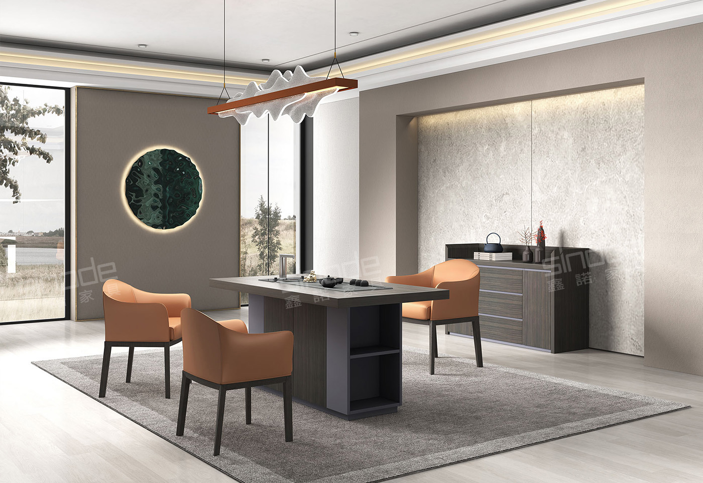 1.工藝:見(jian)(jian)光(guang)面(mian)(mian)采用E0級中(zhong)密度纖維板+0.6mm天(tian)然木皮做水(shui)性漆(qi),不見(jian)(jian)光(guang)面(mian)(mian)采用E0級刨花板貼三聚氰胺飾面(mian)(mian); 2.封邊(bian):見(jian)(jian)光(guang)面(mian)(mian)天(tian)然木皮封邊(bian),非(fei)見(jian)(jian)光(guang)面(mian)(mian)采用優質PVC封邊(bian); 3.配件:“BMB”緩沖(chong)(chong)門鉸+“BMB”緩沖(chong)(chong)三節導(dao)軌(gui)+內嵌式高(gao)端(duan)烏金石茶(cha)臺(tai)+高(gao)端(duan)智能茶(cha)具(304#食用級不銹鋼);