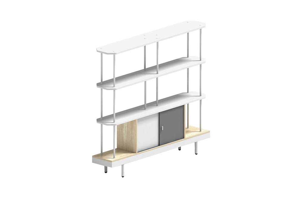 1.工藝:采(cai)用(yong)E0級刨花板貼三聚氰胺飾面 2.封邊(bian):采(cai)用(yong)優質PVC封邊(bian) 3.趟門:5mm進(jin)口密度(du)板; 4.五(wu)金:細磨砂白色金屬下架+鋁型材支撐柱; 5.配(pei)件(jian):鍍(du)珍珠鉻(ge)色鉛筆拉手